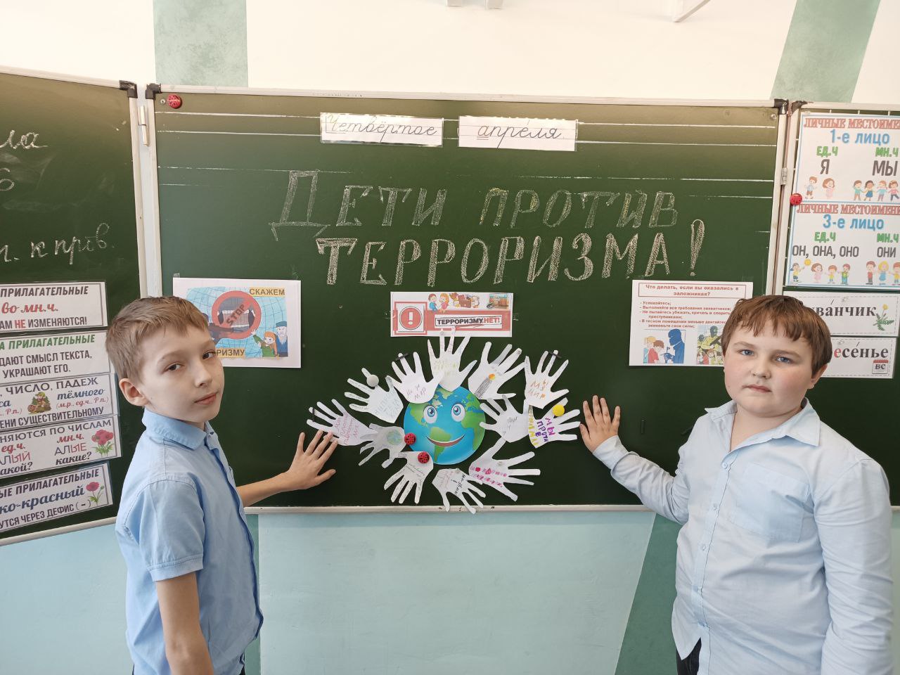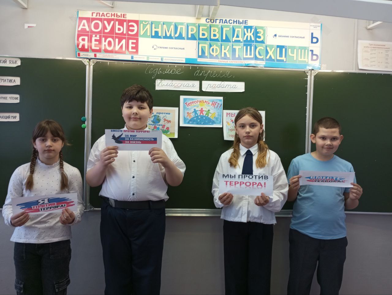 В 4а классе прошёл классный час по теме "Не совершай ошибок". Ребята узнали об угрозах и причинах вовлечения детей и молодёжи в деятельность террористических и неонацистских организаций. Мероприятие прошло под девизом: " Мы против терроризма!". Только все вместе мы сможем остановить террор. В единстве наша сила!