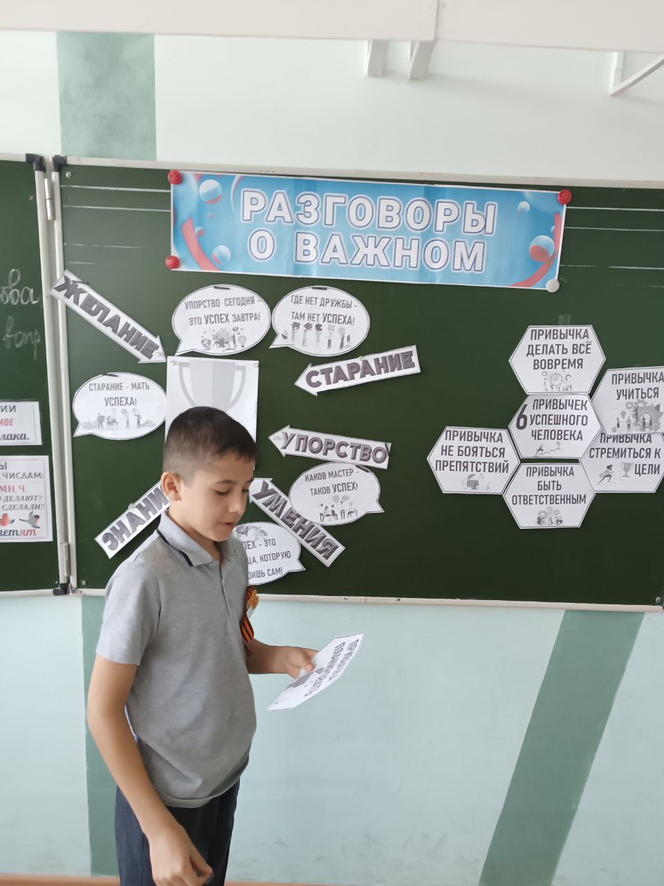 28 апреля в 1-11 классах МКОУ "Заплавинская СОШ" прошло внеурочное занятие из цикла "Разговоры о важном " на тему:"Что такое успех?".