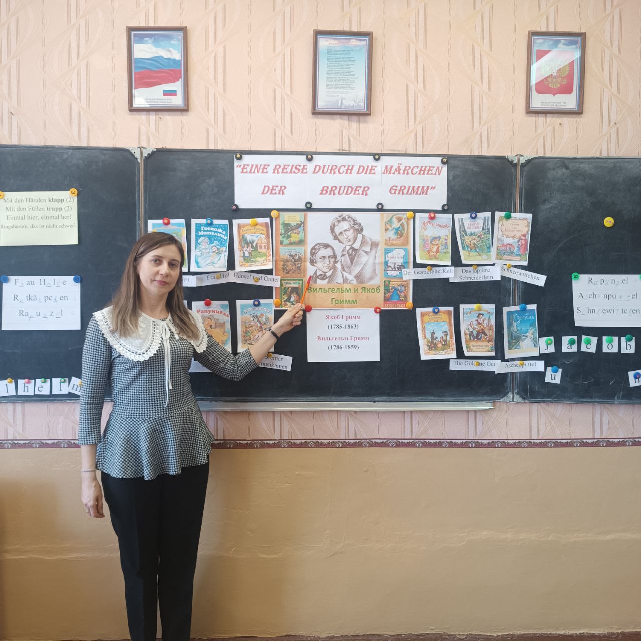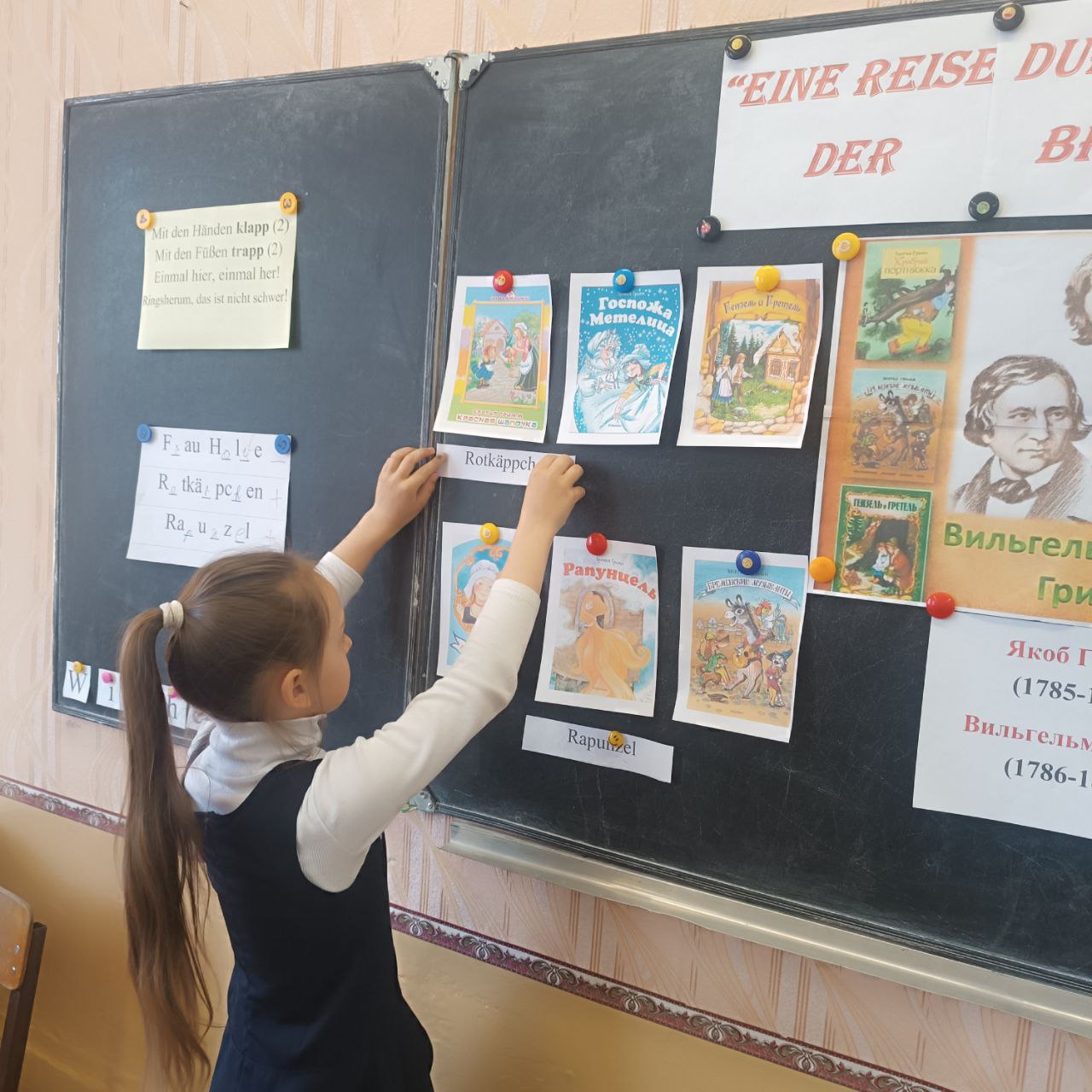 8 апреля в рамках декады филологии во 2х классах прошло внеклассное мероприятие по немецкому языку "Путешествие по сказкам Братьев Гримм". Учащиеся познакомились с биографией и творчеством немецких сказочников, погрузились в волшебный мир сказок,выполняя различные задания: отгадывали название сказки по персонажам; соотносили сюжетную картинку и имя персонажа и т.п. Ребятам понравилось соревноваться друг с другом. Лучшими знатоками сказок стали учащиеся 2б класса.