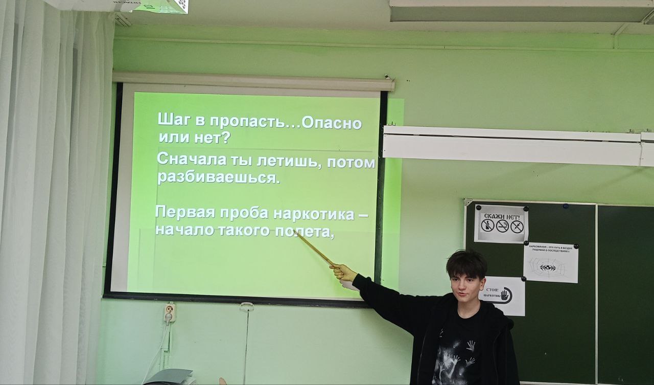 В 9 а классе прошёл классный час "Наркотики - путь в бездну". Ребята в ходе диалога обсудили вопросы: почему люди  употребляют наркотики, каковы последствия употребления наркотиков. В итоге сделали вывод, проба наркотика- это падение в пропасть, из которой не выбраться!