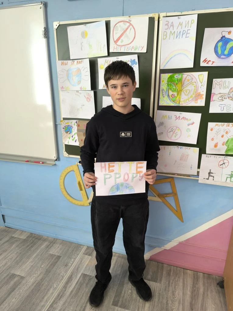 Учащиеся ознакомились с информацией о том, что значит террор, террорист. Как обезопасить себя от других людей. Ребята закрепили для себя несколько правил: как нужно вести себя правильно, не привлекая внимания преступников. Затем ребята отразили свое отношение к террору в рисунках и пояснили его смысл.