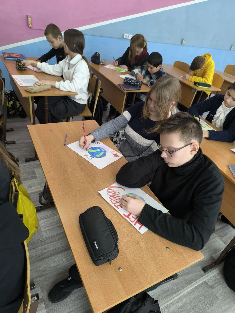 5 февраля ученики 10 класса провели классный час в 7 "Б" классе на тему: «Вместе против террора!».