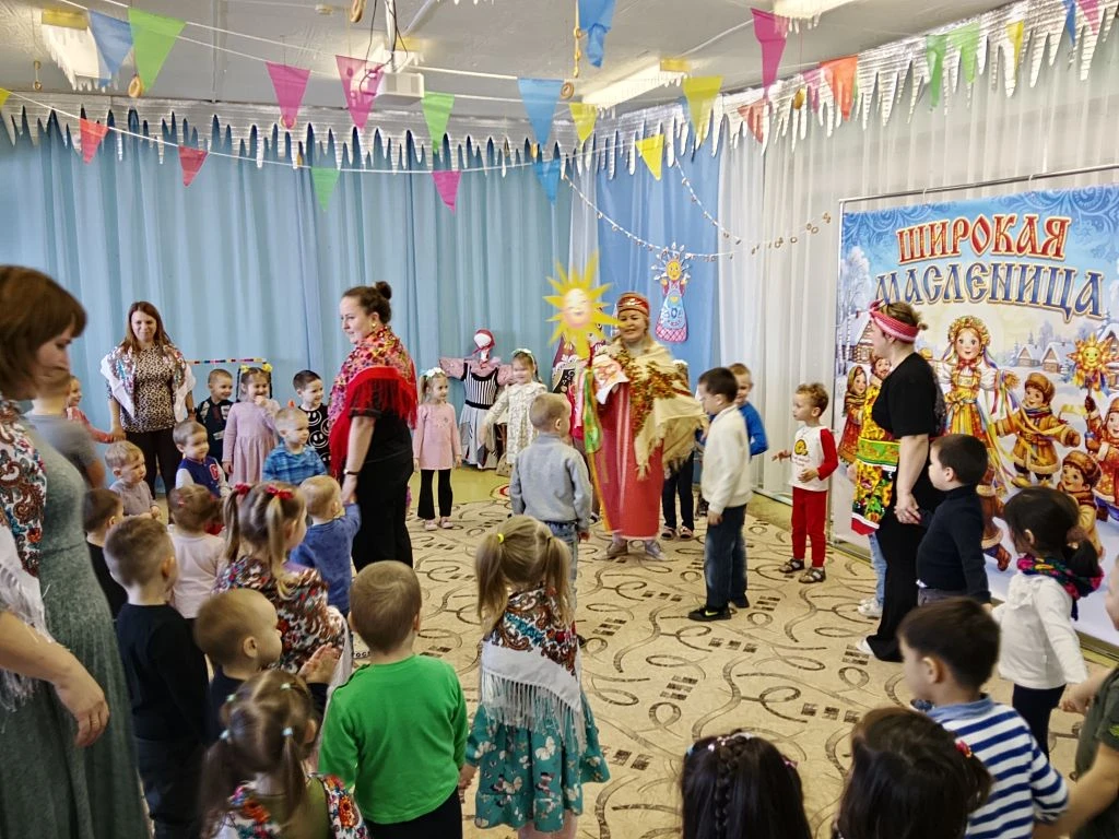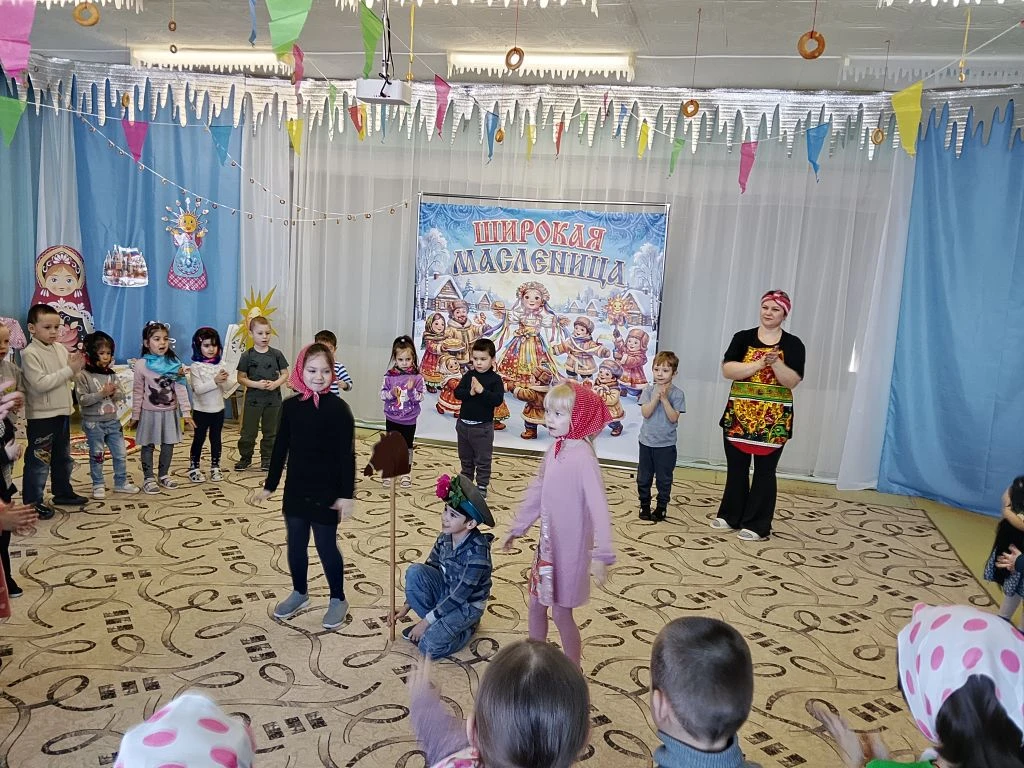 Дошколята весело и задорно отпраздновали сегодня Масленицу. Зал наполнился смехом, улыбками и праздничным настроением. Дети водили хороводы, играли в весёлые игры и конкурсы.