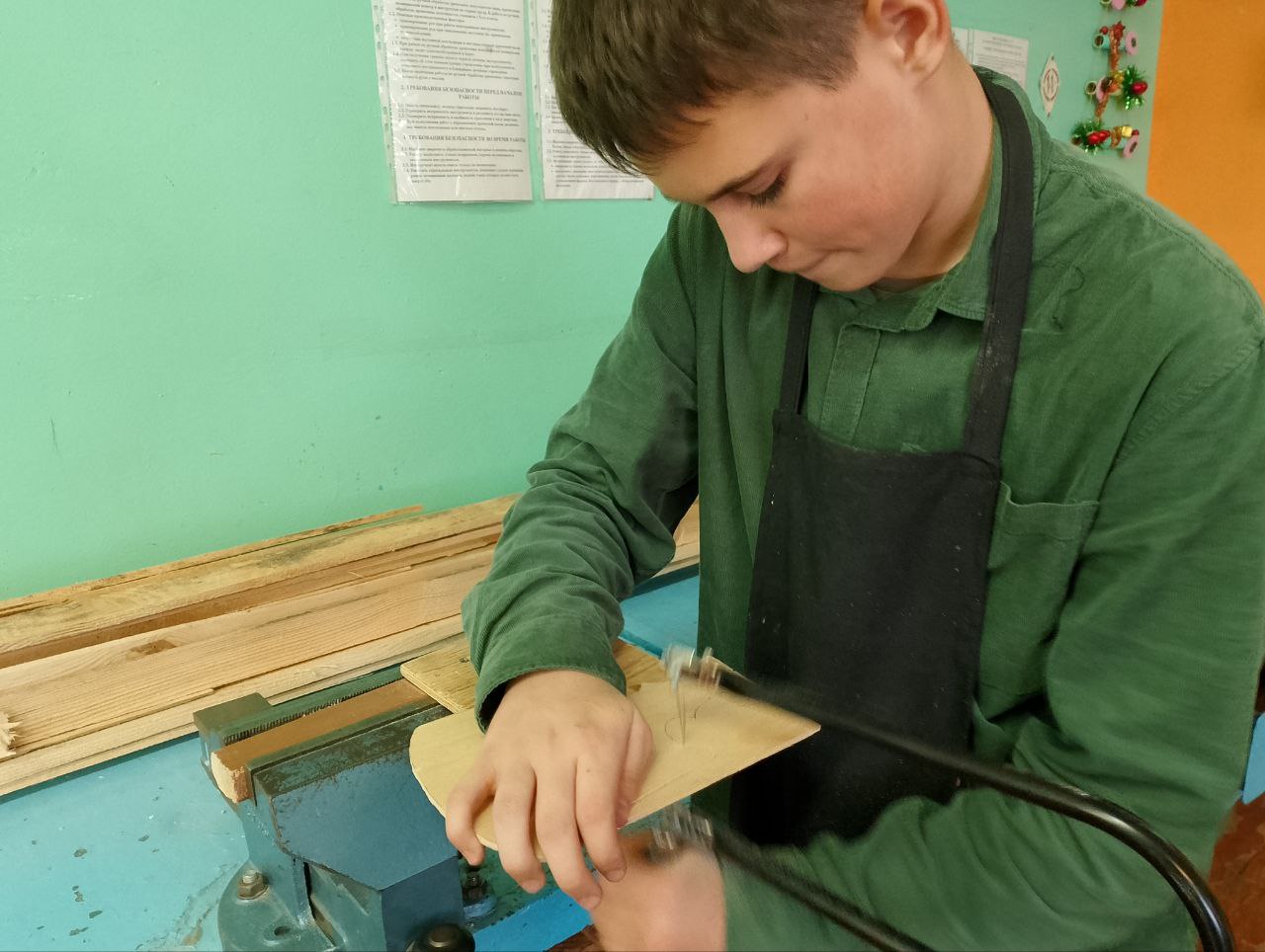 Сегодня на уроке технологии обучающиеся 7б класса под руководством учителя Балдина М.С. изготавливали разделочную доску для фруктов "Любимой маме", которая станет полезным подарком на день матери.