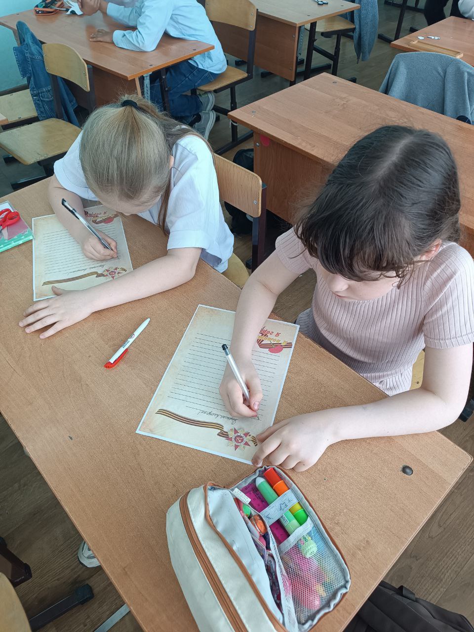 В преддверии Дня Победы ребята писали письма-треугольники для ветеранов. Сложив листы бумаги аккуратными треугольниками, как это делали солдаты на фронте, дети писали самые тёплые слова благодарности. Они рассказывали о себе, о своих семьях, о том, как ценят мирное небо. Каждое письмо было наполнено детской искренностью и уважением к подвигу героев. Эти треугольники, написанные с любовью, станут частичкой тепла и заботы для тех, кто подарил нам свободу.