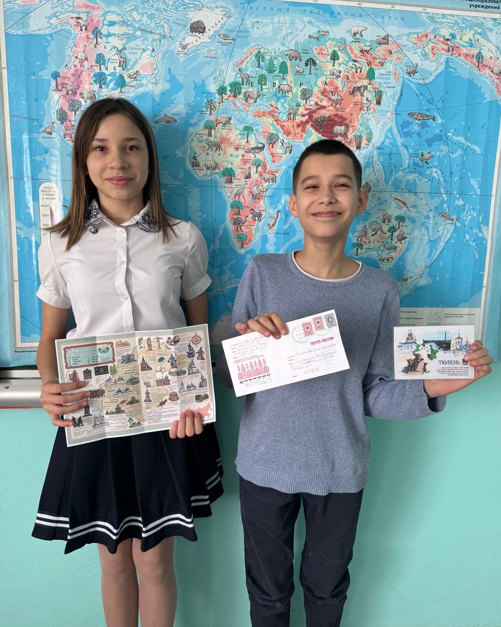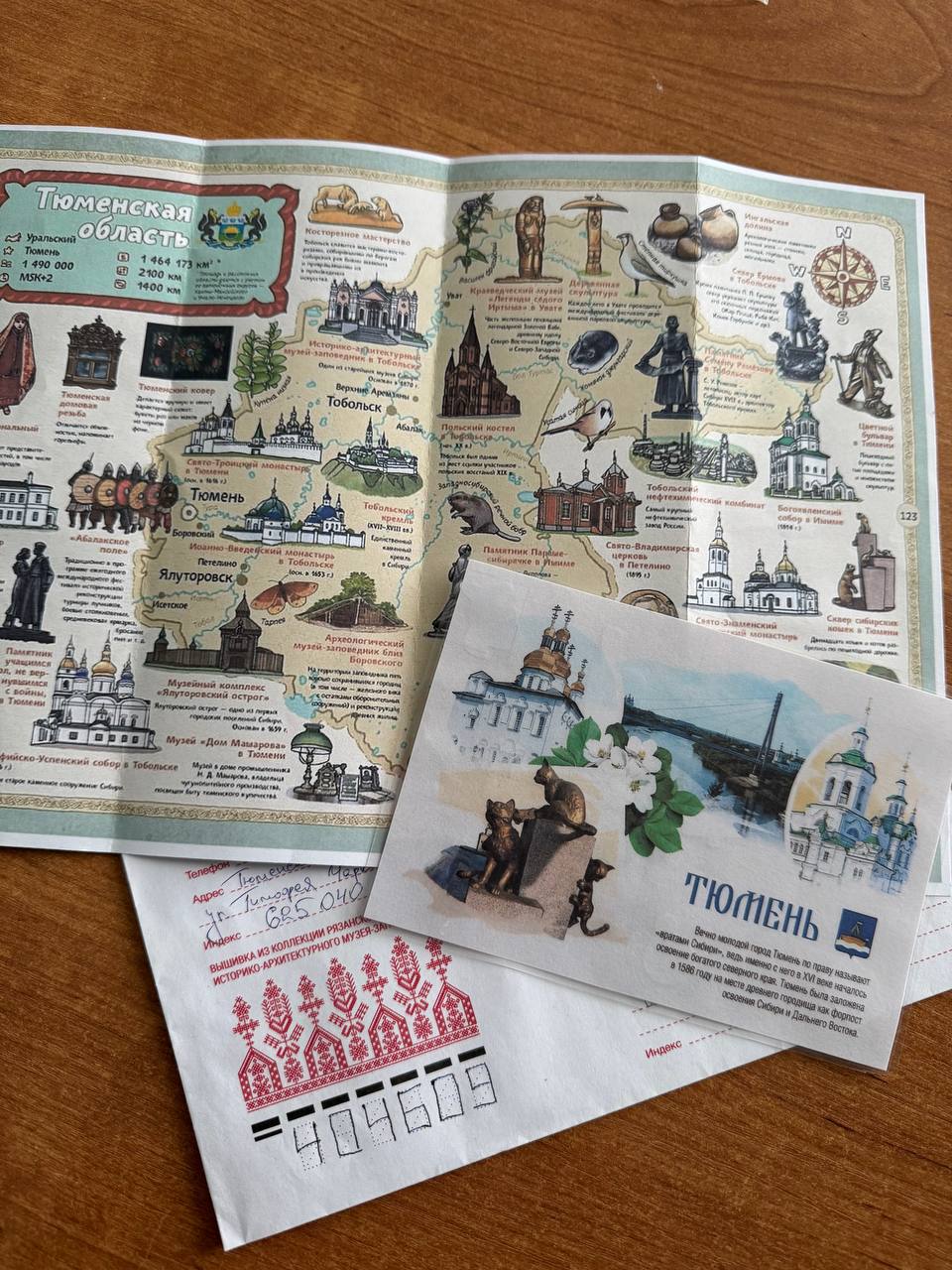 В течении учебного года ученики 7 «А» класса участвуют в проекте  Географический посткроссинг  пишут интересные вопросы о своём крае и подписывают открытки  Ребята получили письмо с вопросом и открыткой из Тюмени.