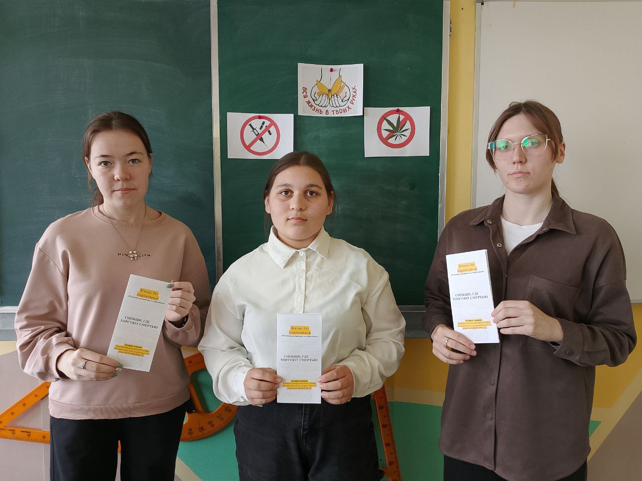 В 11 классе в рамках всероссийской акции "Сообщи, где торгуют смертью" в целях формирования антинаркотического мировоззрения, профилактики распространения наркомании и противодействия злоупотреблению и сбыту наркотических средств прошла профилактическая беседа. Дети активно участвовали в обсуждении, делясь своими мыслями и вопросами. Каждый получил буклет "Жизнь без наркотиков".