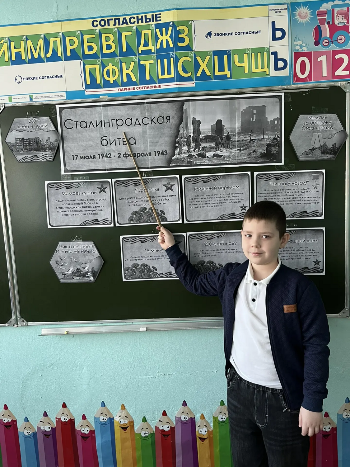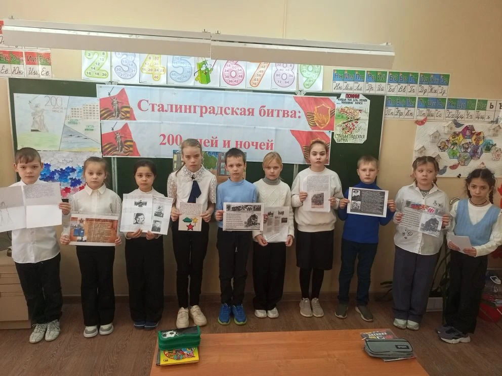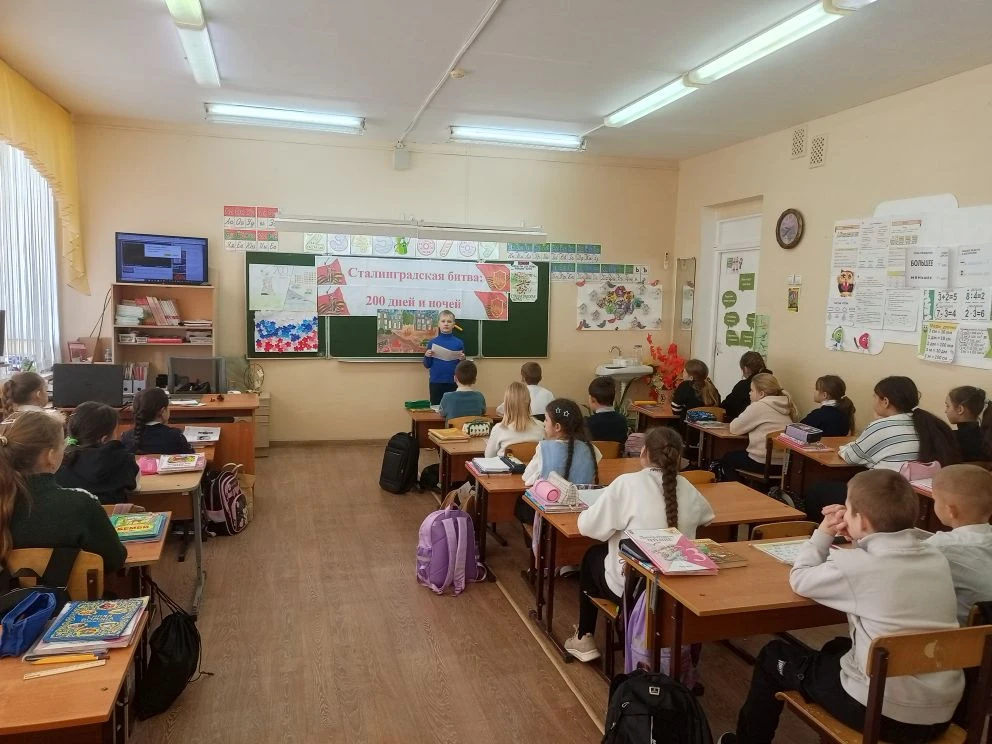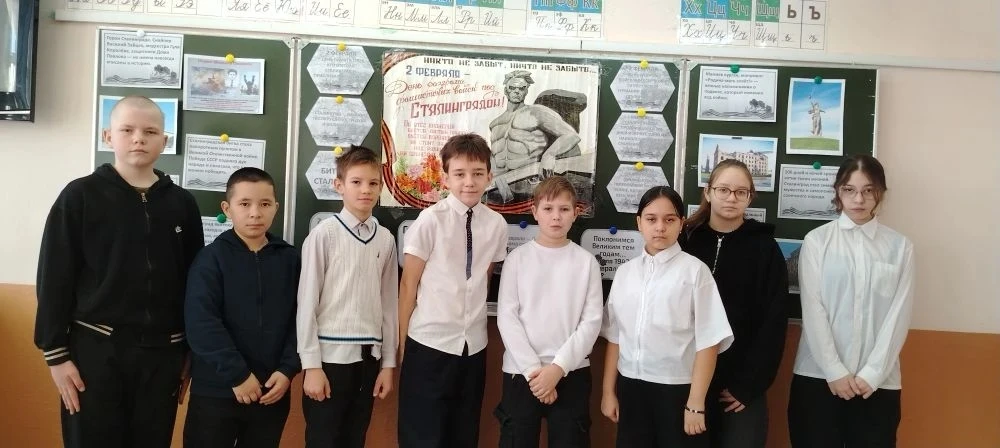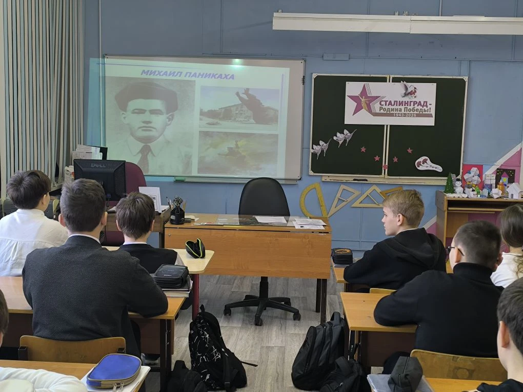 На уроках ученики вместе с педагогами вспоминали ход легендарной битвы, которая переломила ход всей Второй мировой войны. Ребята говорили о мужестве защитников Дома Павлова, о несгибаемой воле бойцов на Мамаевом кургане, о трагизме и героизме каждого дня сражения.