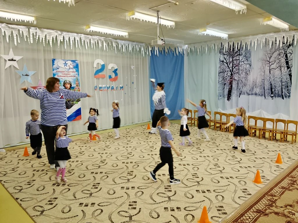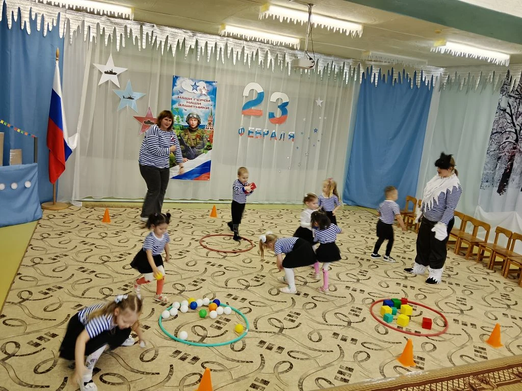 17.02 во 2-ой младшей группе «Капельки» утро началось задорно и радостно, ведь мальчишки и девчонки собрались вместе, чтобы отпраздновать важную российскую дату - День Защитника Отечества и поздравить своих пап и дедушек. Ребята торжественно маршировали с флажками под песню «Как солдаты наши мы идём». Вместе с родителями делали зарядку, танцевали, а участвуя в весёлых конкурсах, показали свою быстроту и ловкость.