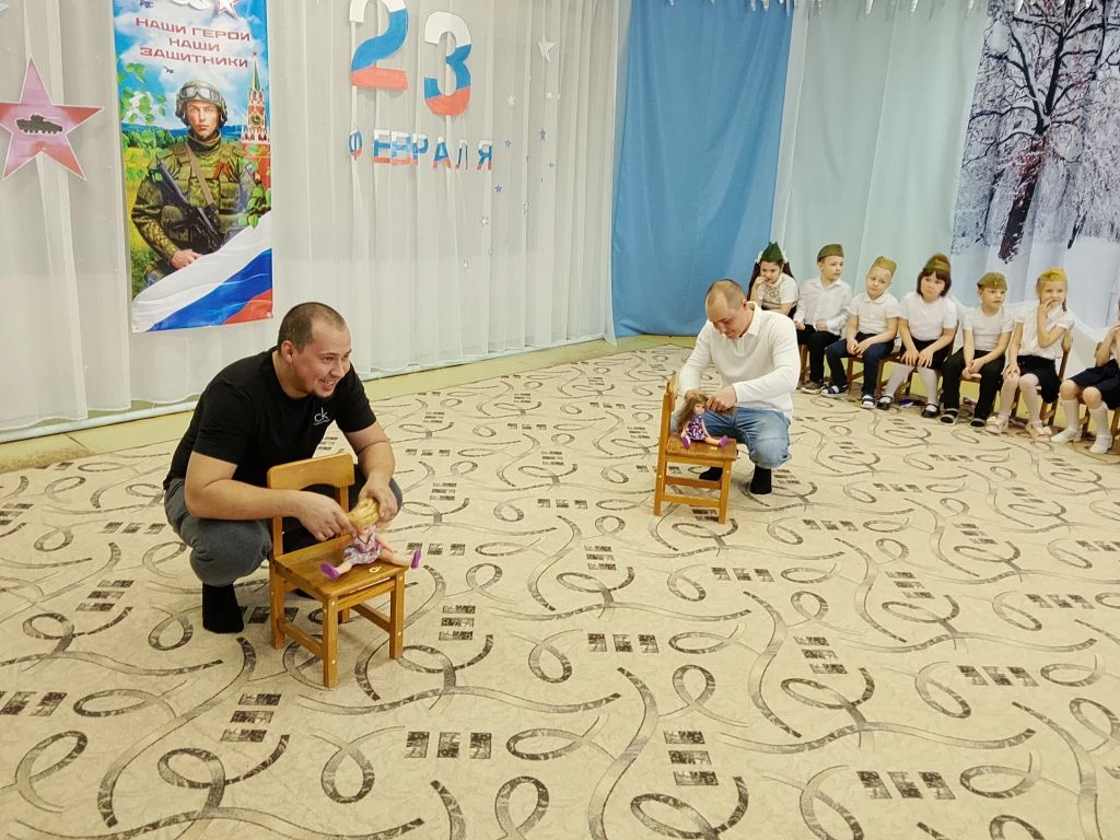 В наших дошкольных группах началась череда утренников, посвященных Дню защитника Отечества. Первыми 16.02.26г. поздравили своих дедушек и пап воспитанники старшей группы "Берёзка". Ребята прочитали стихи, спели песни, мальчики исполнили замечательный танец "Яблочко". Родители тоже не остались без дела - ребята с восторгом наблюдали за папами, которые участвовали в конкурсах.