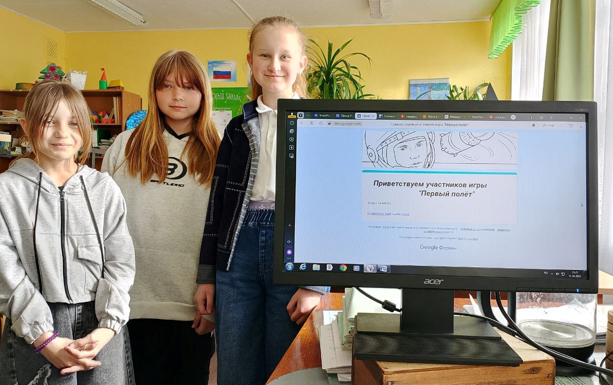 В 2025 году отмечается 60-летний юбилей важного события. 18 марта 1965 года состоялся первый в истории выход человека в открытый космос, его совершил летчик-космонавт Алексей Архипович Леонов. Накануне, 11 апреля, команда "Млечный путь" (5Б класс) приняла участие в региональной онлайн-игре "Первый полет". Игра состояла из 5 этапов: